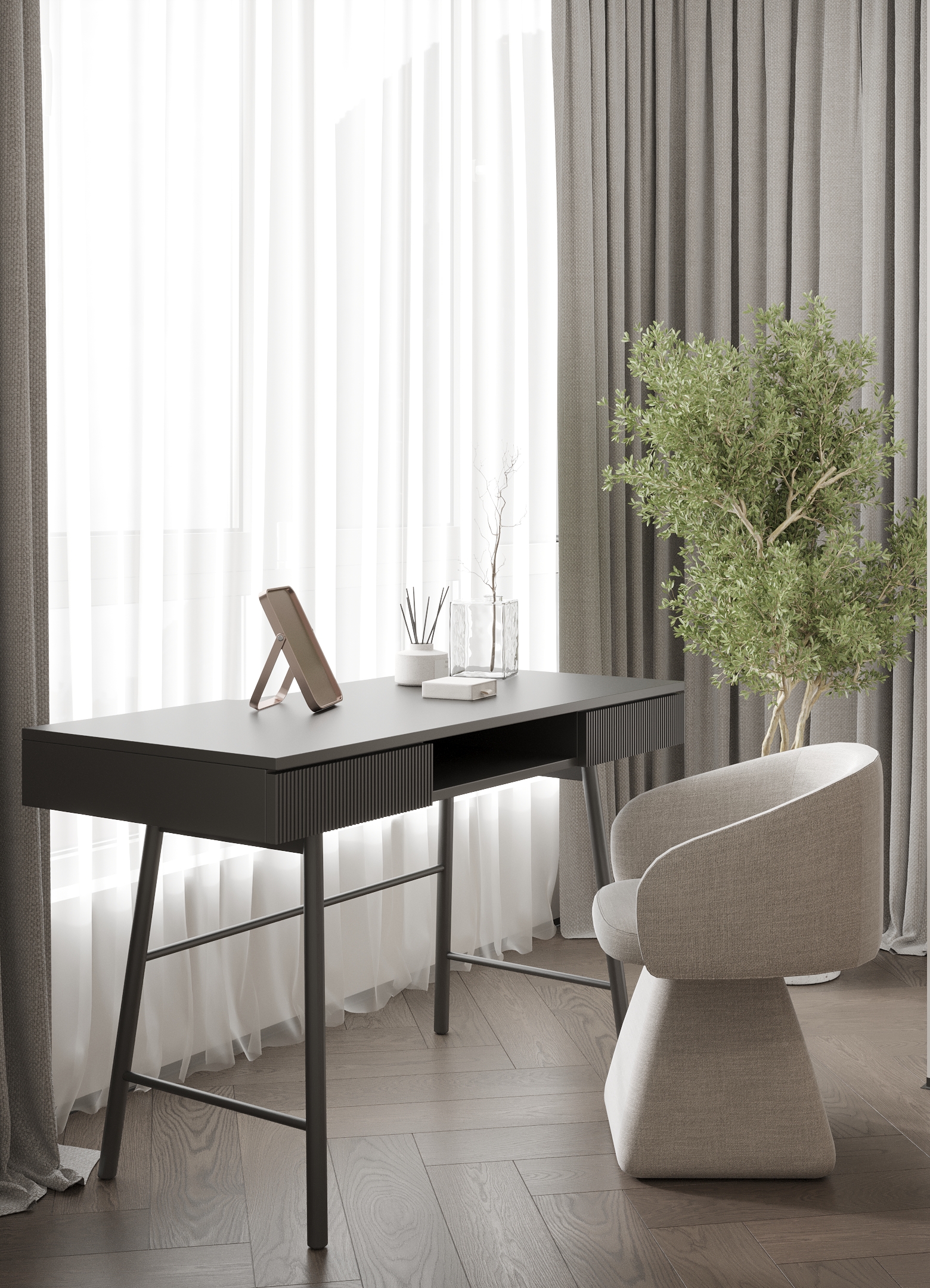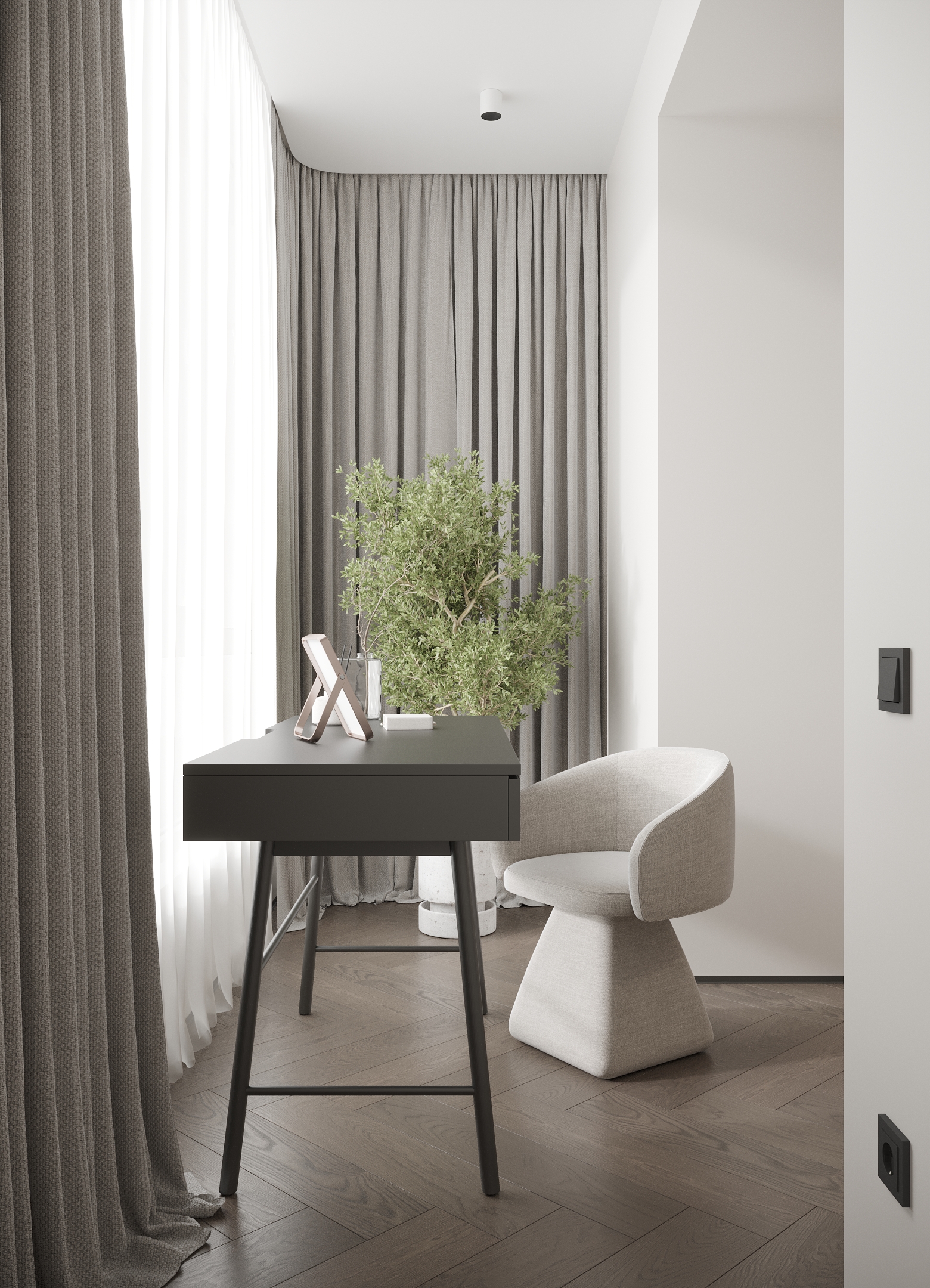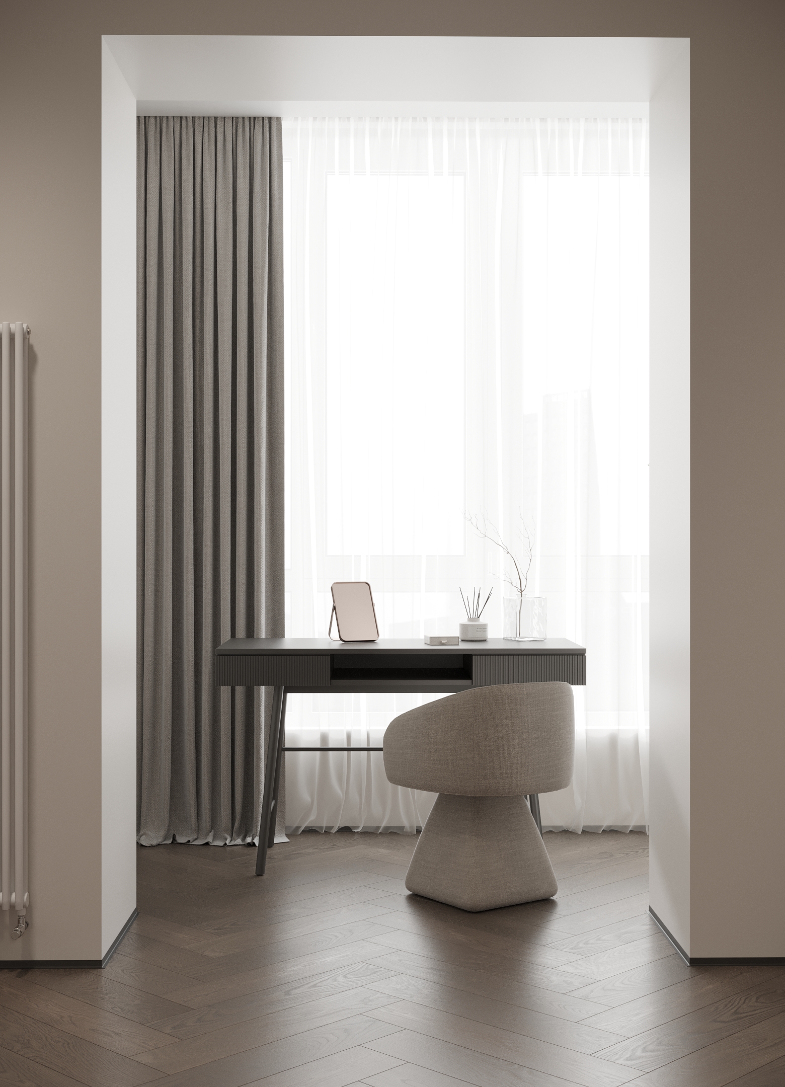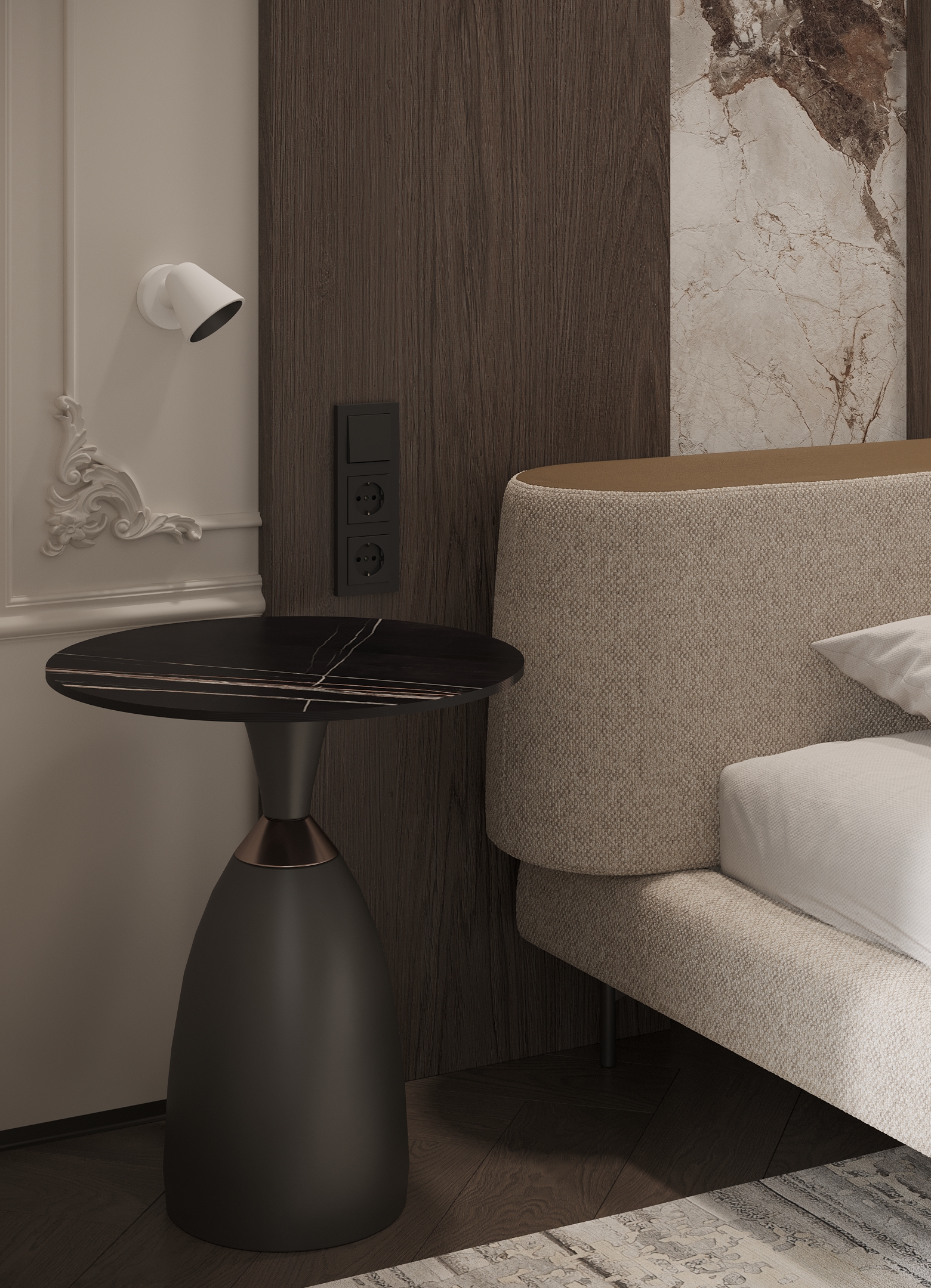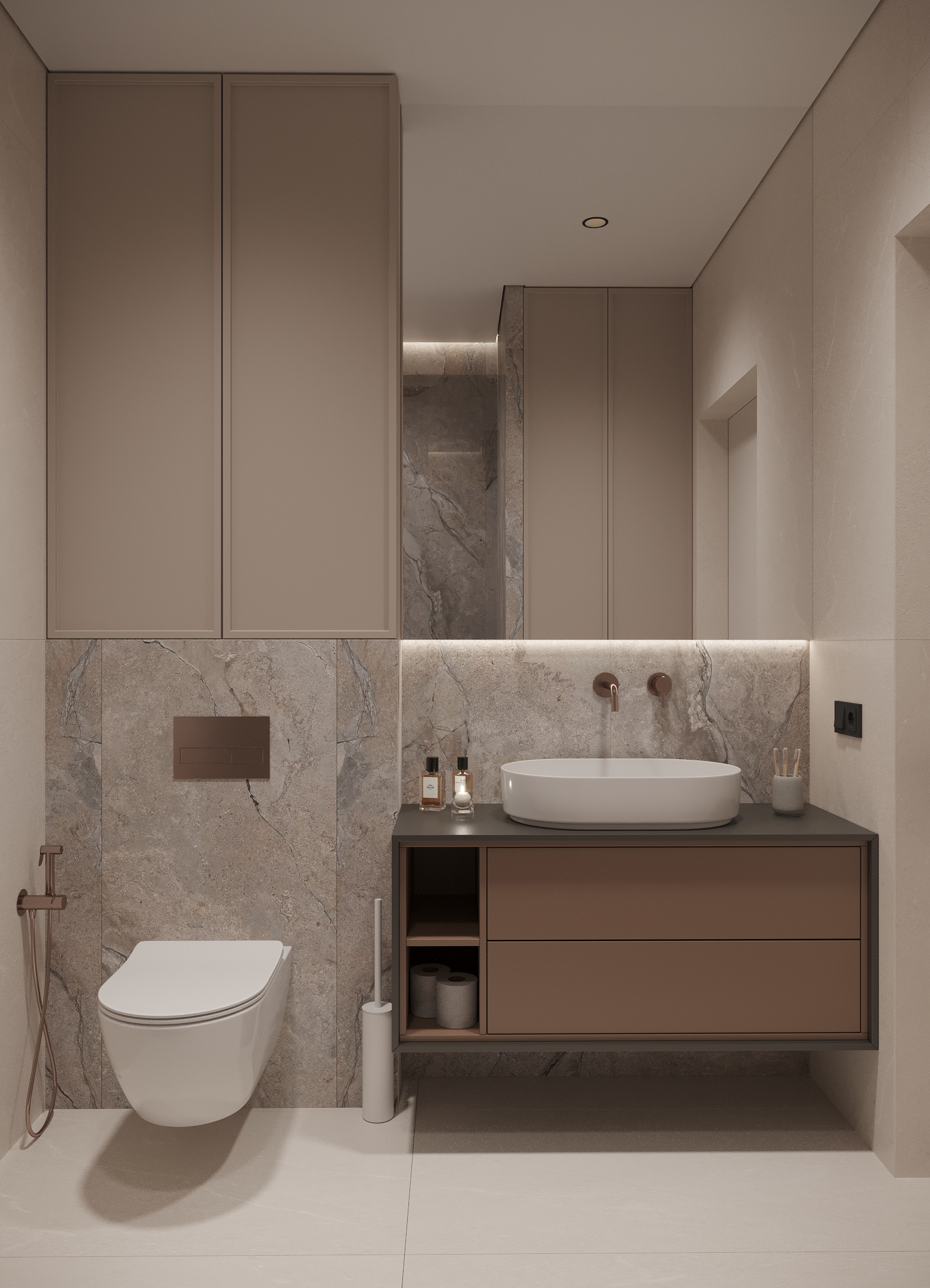 Преміальний житловий простір, наповнений теплом і вишуканістю. Інтер’єр витриманий у карамельній палітрі з легким ароматом теплого цукру, у поєднанні з натуральним каменем та деревом, що створює відчуття м’якої, затишної розкоші. Чисті лінії та сценарне освітлення формують атмосферу спокою, статусу й позачасової елегантності.