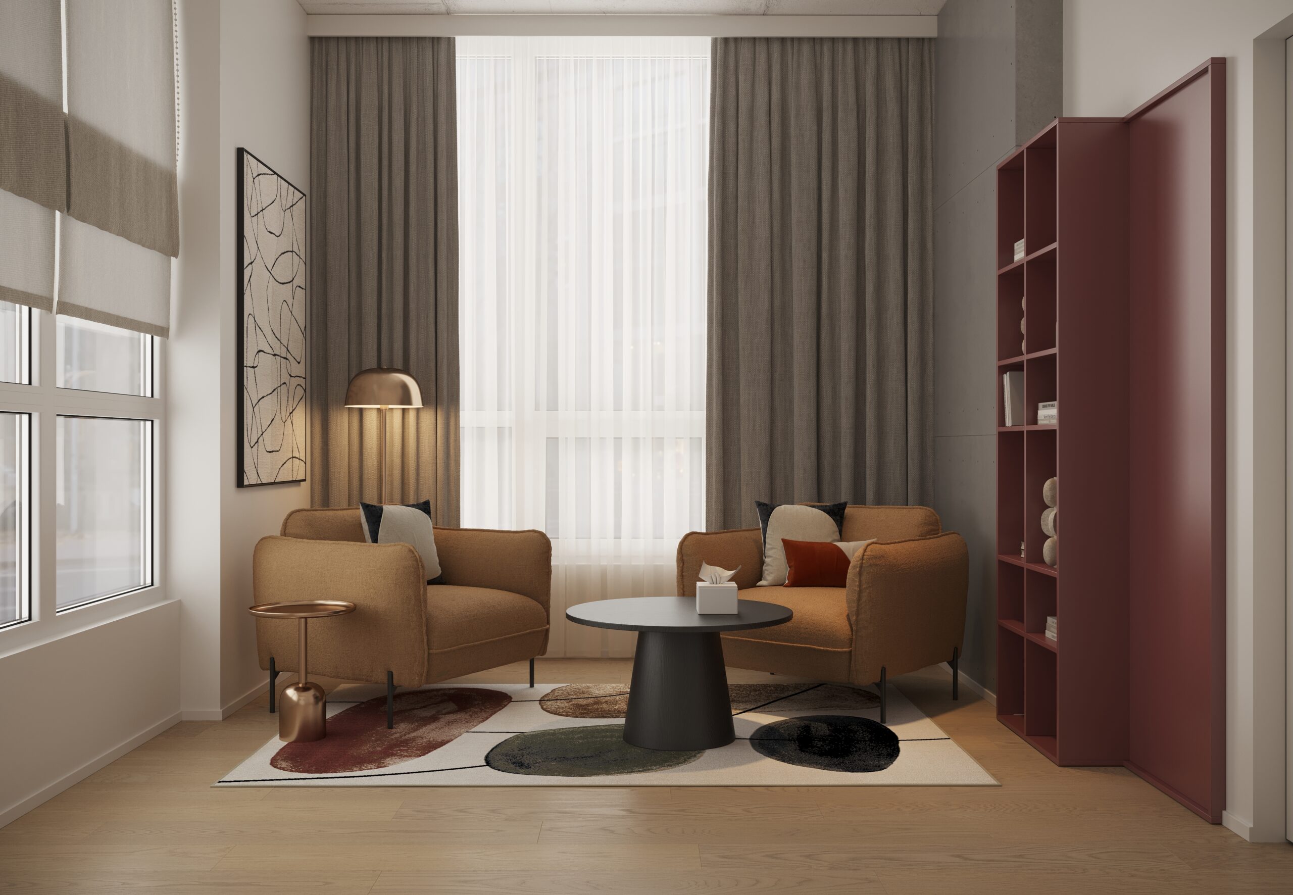 Психічне здоров’я – це стан, який потребує постійної уваги, підтримки й турботи. Завдання дизайнерів у цьому проєкті полягало в тому, щоб через інтер’єр передати відчуття комфорту, стабільності та прийняття, створивши простір, де легко бути чесним із собою та почати шлях до внутрішньої рівноваги.