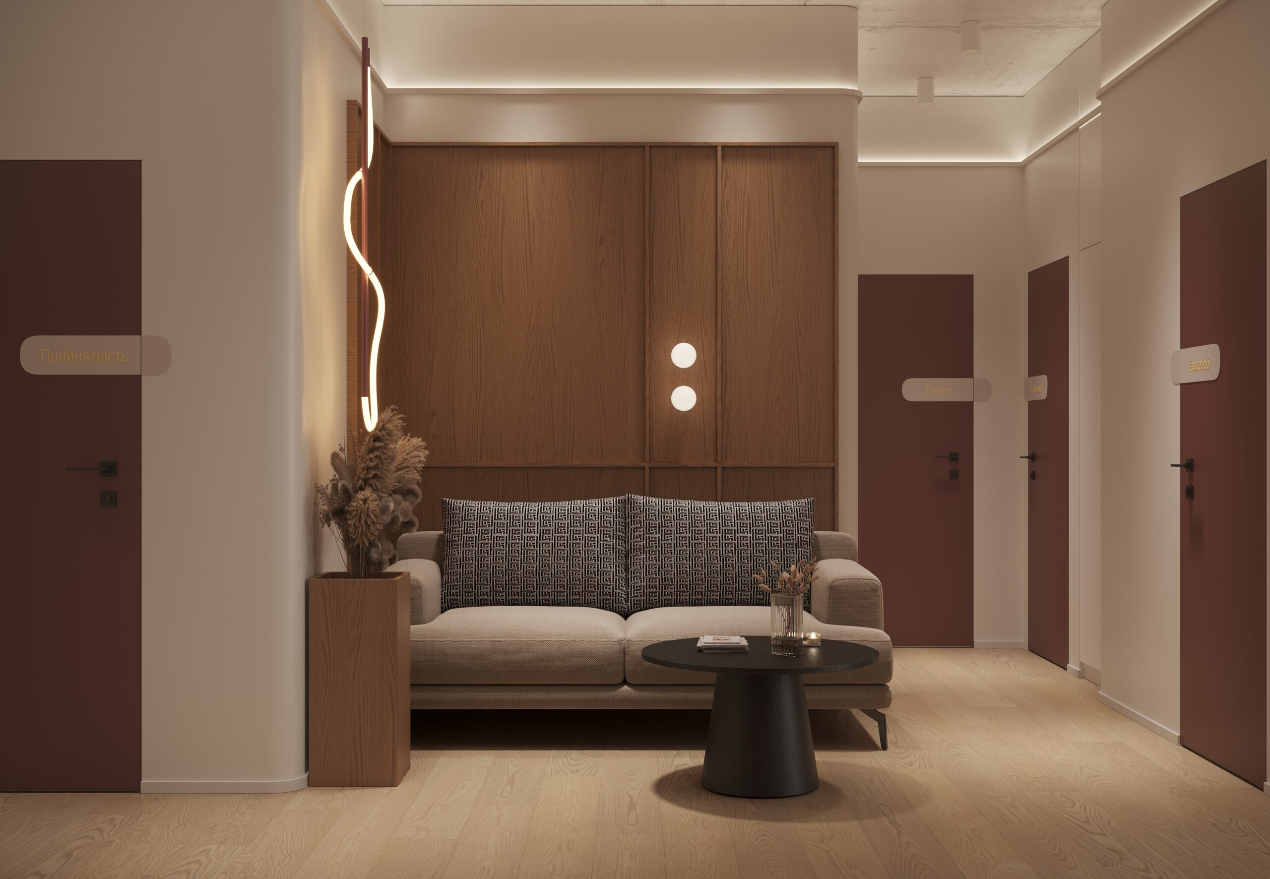 Harazd Mental – психологічний простір, створений для усвідомленого відновлення внутрішнього балансу. Тут кожен із трьох кабінетів продуманий до деталей: текстури, відтінки, світло й матеріали працюють разом, формуючи атмосферу безпеки, довіри та спокою.